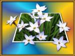 Wunderschön, Helmut, das gefällt mir sehr. Muss ich auch mal probieren, etwas, das nach allen Seiten aus dem Rahmen fällt. Auch die Hintergrundfarben sind schön, so richtig nach Frühling, und sie geben den weissen Blümchen noch den nötigen Pfiff.