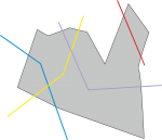 kann ich irgendwie auf einfache Weise ein Polygon durch mehrere Polylinien zerteilen? Im angehängten Beispiel möchte ich die graue Fläche durch die bunten Linien zerteilen.