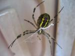 Kürzlich habe ich eine beobachtet, wie sie ein wild zappelndes Bienchen behandelte, das ihr ins Netz gegangen war. Mit "spitzen Fingern" attackierte sie es immer wieder, und plötzlich hatte das Bienchen keine Chance mehr. Es wurde eingewickelt wie eine Mumie, und lag nur noch reglos und wartete auf seinen Tod.