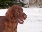 Peggy ist ein hochadeliger Irischer Setter, ziemlich verspielt, tobt wie eine "Kaputte" im Schnee und sammelt danach wieder "ganz artig Kind" ihre Schmuseeinheiten ein.