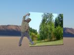 Sicher ist das besser. Nur stimmen die Schatten perspektivisch nicht. Die Sonne beim hinteren Bild scheint auch tief zu stehen - somit gäbe das lange Schatten. Die Sonne scheint von rechts zu kommen, das solltest Du auch berücksichtigen. Der Horizont des hinteren Bildes scheint schief zu sein. Daß Du die Person dunkler gemacht hast, ist schon richtig. Ich finde sie jetzt aber zu dunkel und sie sollte vielleicht von rechts mehr Licht bekommen.